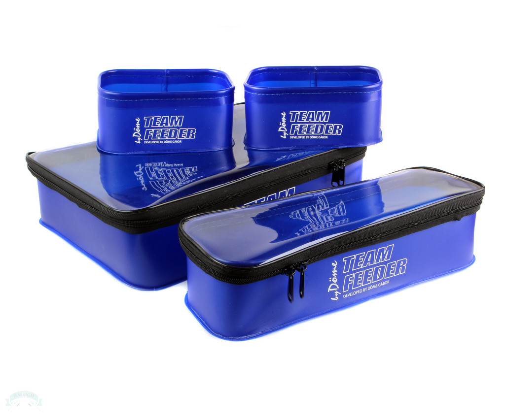 Sokoldalúan felhasználható EVA anyagú tároló szettek,amelyekben aprócikkeket,csalikat,pelleteket,élő és szemes csalikat is tarthatunk.A nagyobb tárolók praktikus,átlátszó zárható fedőt kaptak.