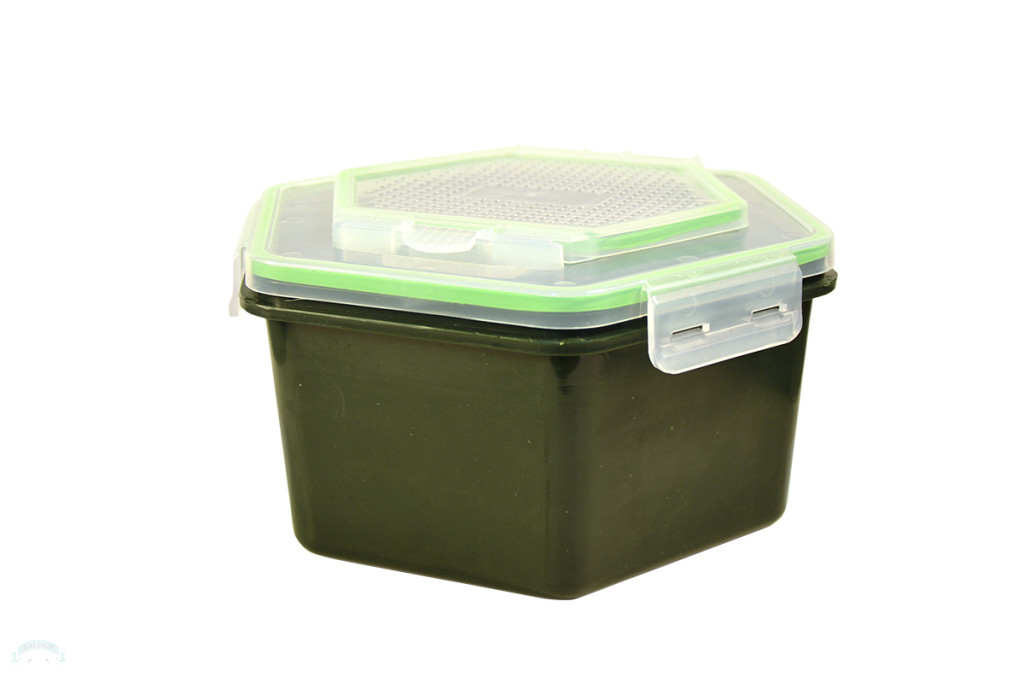 Masszív műanyag csalitároló doboz precízen záródó műanyag fedővel. Apró furatokkal ellátott fedele engedi levegőzni a csalinkat. Kis méretű furatain még a legkisebb pinkik sem tudnak megszökni. A dobozok fedele praktikus felső és oldalsó patentzárakkal van ellátva, mely miatt a praktikussága, akár csalizás során is kiemelkedő.