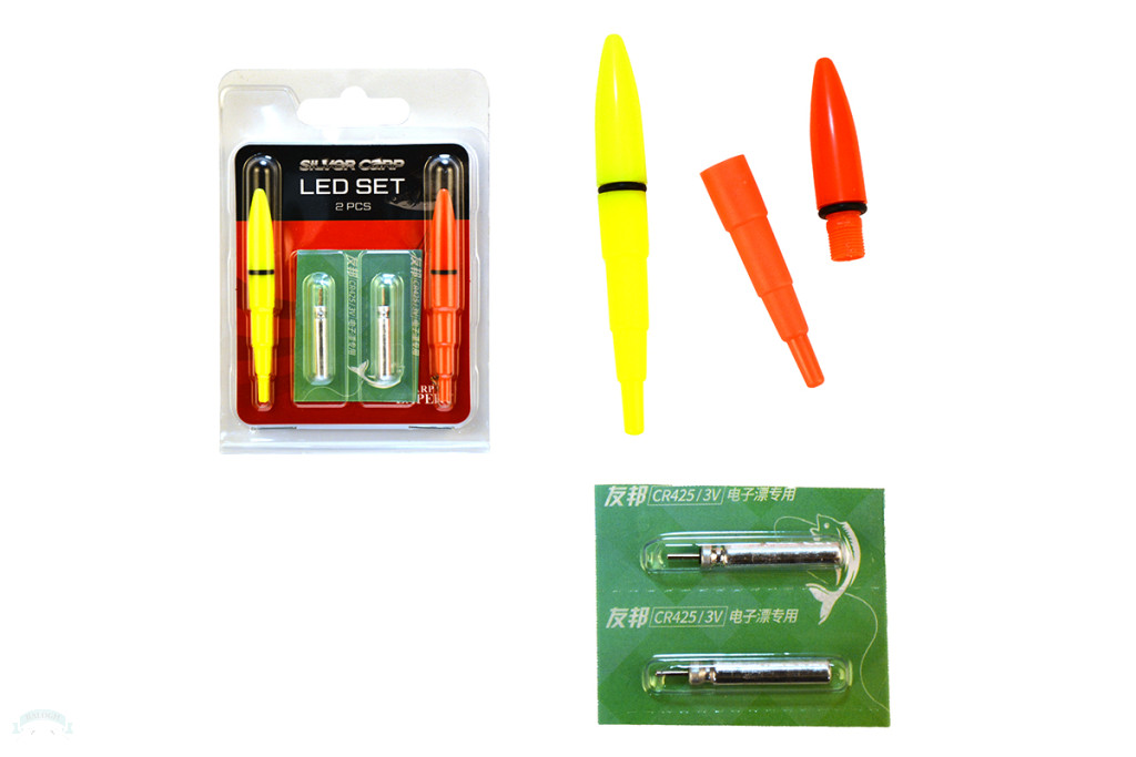 Ez a praktikus LED úszó szett 2 db élénk színű, jól látható úszóra rögzíthető ledet tartalmaz (sárga és narancssárga kivitelben), amelyekhez 2 db CR425 típusú 3V-os elem is jár, így azonnal használatra kész. Az erős fény segítségével mindig pontosan követheted a kapásokat, még teljes sötétségben is.