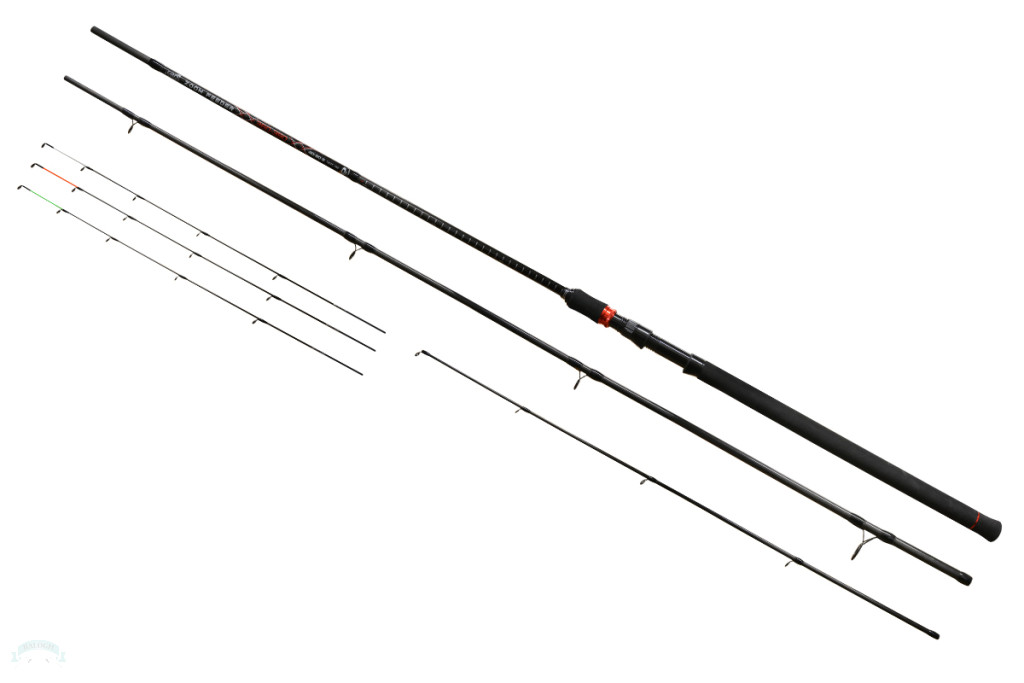 A különlegessége azonban az, hogy a nyél fölé be van építve egy teleszkópos rendszer, amely 30 centi tartalékot rejt. Amennyiben a botot "gyári", kiindulási állapotában használjuk, akkor 360 centiméter hosszú, ha azonban kihúzzuk a teleszkópos részt, máris 390-es lesz! Ez hatalmas segítség lehet abban az esetbe, ha nagyobb távolságban találjuk csak meg a halakat, vagy ha mondjuk feltámad a szél és az addig horgászott táv elérése már gondot okozna a 360-as bottal. A Zoom Feedert használva nem lehet probléma egy ilyen helyzet sem!