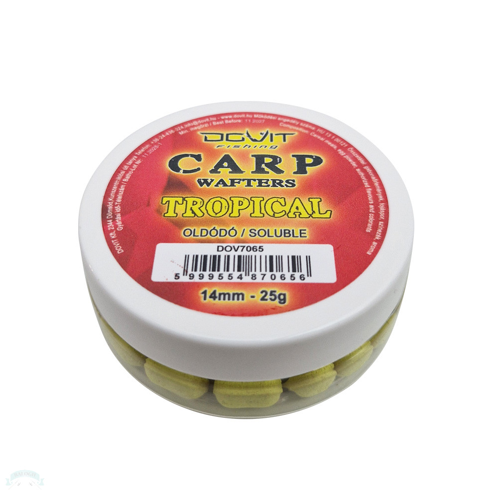 CARP WAFTERS (14mm) FULL CORN CARP Mikor válaszd a Carp Wafterseket? Ha pontyokat, amurokat szeretnél szelektálni. Ha szeretnéd elkerülni a kisebb, zavaró halak kapását.A Carp Wafters előnyei. Tökéletes ballanszírozás. Stabil anyagszerkezet. Többféle rögzítési lehetőség. Rögzítsd a csalit egyszerűen! A Carp Wafters anyagszerkezete több rögzítési módot tesz lehetővé. Biztonsággal tartja bármilyen csalitüske, de hajszálelőkén fűzve is felkínálhatod. A csali anyaga rugalmas, repedés mentes. Szelektáld a halakat! A Carp Wafters 14mm-es mérete miatt a zavaró keszegeket, kárászokat automatikusan szelektálja, de számos horgászat bizonyította, hogy a pontyok méretét is sikeresen növeli. Kettő szem Carp Wafters egy hajszálelőkére fűzve kapitális pontyokat is eredményezhet. Tipp: A Carp Wafters optimálisan 8-as és 10-es horoggal dolgozik. Ebben az esetben a horog a mederfenéken marad, a csali pedig felbillen, ami a legóvatosabb pontyokat is kapásra ingerli. Minőségi garancia: Magas minőségi követelményeknek megfelelően, lényegében élelmiszeripari sztenderdek szerint gyártott termék. Megbízható forrásból származó, ellenőrzött alapanyagok. A csomagolást pára és aroma záró fóliával is elláttuk.A Carp Wafters egy tökéletesen ballanszírozott csali, ami elsősorban a nagyobb testű halak szelektálását hivatott megoldani. Csalitüskén és hajszálelőkén fűzve is felkínálható. Tapasztalataink szerint bordás kosaras feederezés során a leghatékonyabb, de flat-method kosárban is tud meglepetéseket okozni. Egész évben használható csali.Kiszerelés: 25g