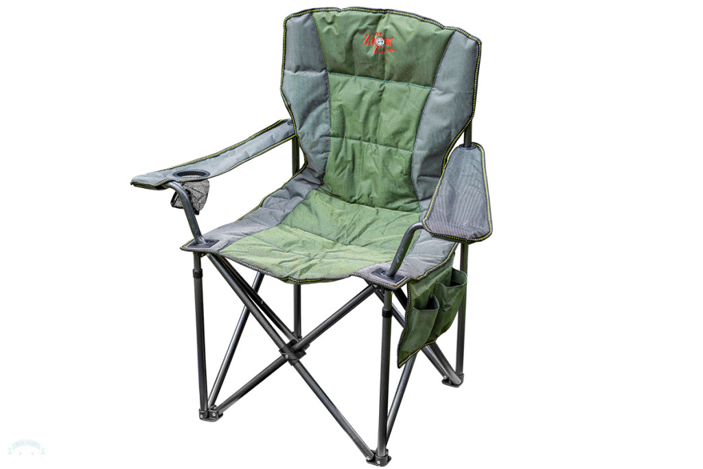 Erős szerkezetű masszív összecsukható karfás horgász szék strababíró huzattal. Italtartóval és oldalszebekkel ellátott és hord táskával kapható.