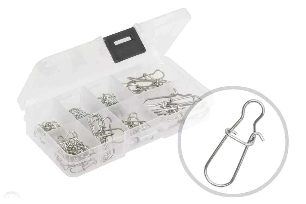 Több féle méretű Nice Snap kapocsból álló szett, mely praktikus, nyolc fakkos műanyag dobozban kapott helyet. A speciális kialakítású, nagy teherbírású kapcsok könnyen nyithatóak, ugyanakkor biztosan zárnak, ezáltal a műcsalik cseréje szempillantás alatt elvégezhető. Elsősorban pergető horgászoknak ajánljuk.
