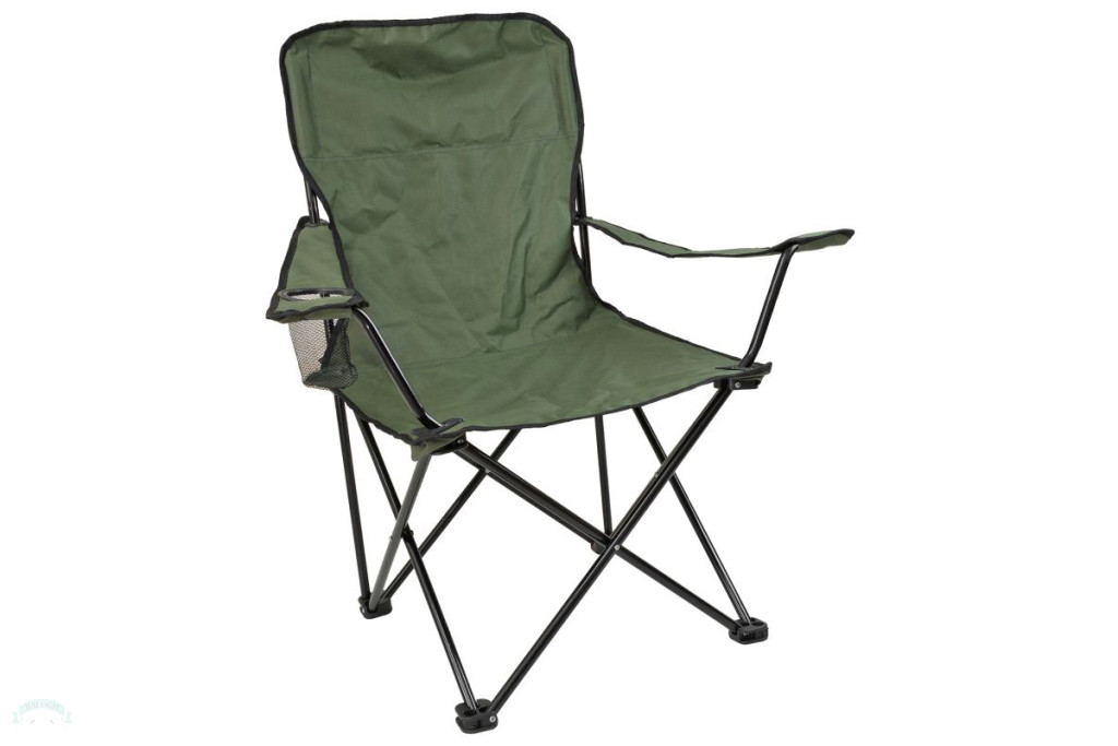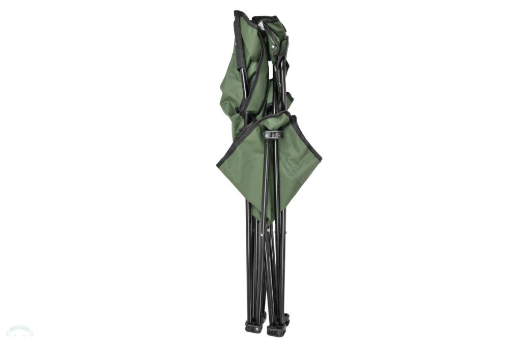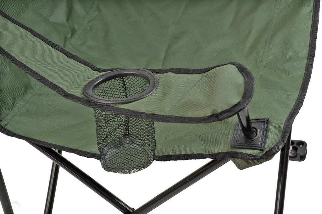 Egy mozdulattal kinyitható, praktikus, könnyű és erős horgászszék, a kartámaszban pohártartóval.