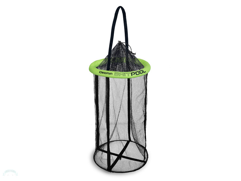 A Delphin BaitPOOL háló praktikus megoldás a ragadozóhalas horgászathoz használt csalihal tárolására. Nagy mérete lehetővé teszi a nagyobb halak, például kárász, keszeg vagy compó életben tartását. A háló felső része körül egy kör alakú úszó található, ami függőlegesen tartja a vízen, ezzel biztosítja a háló teljes kiterjedést a vízoszlopban, valamint elegendő teret a halak számára a szabad mozgáshoz.További előnyt jelent a halak könnyű behelyezése és kivétele a széles húzózsinóros nyíláson keresztül. A haltartó tartalmaz egy pántot is, amely például egy bottartóhoz rögzíthető, így a parttól távolabb, mélyebb vízben is elhelyezhető. A háló gumírozott felülettel van bevonva, amely kevésbé deformálódik, mint a hagyományos hálók, csökkentve a kockázatát annak, hogy a halak esetleg belegabalyodnak. A puha felület nem sérti meg a halakat védő nyálkaréteget, így azok hosszabb ideig jó állapotban tarthatók. Ezenkívül a háló könnyen tisztítható, és nem szívja fel a nem kívánt szagokat.Műszaki paraméterek:Hálóátmérő: 55 cmHálóhossz: 90 cm