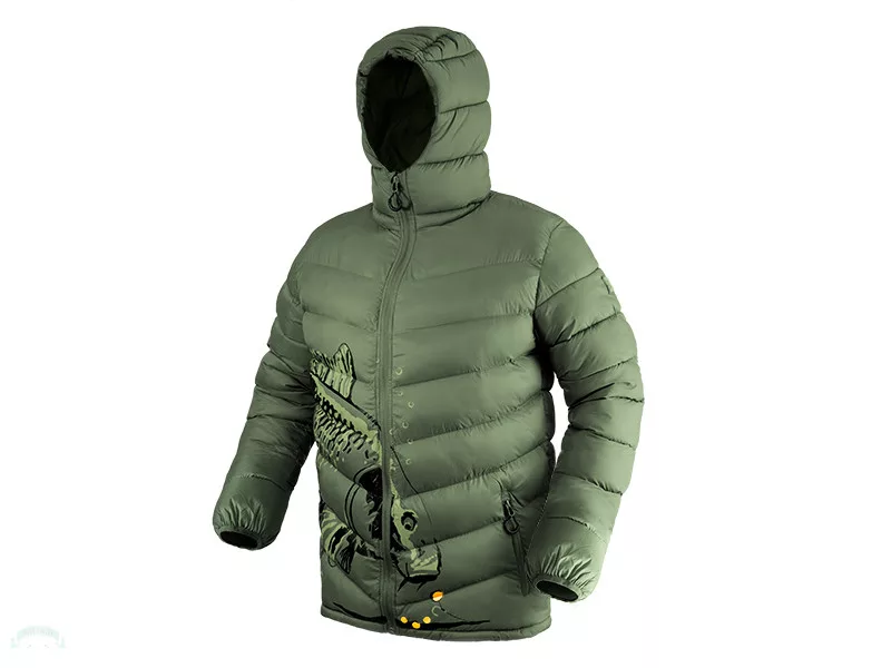 Ha Ön egy olyan horgász, akit a leghidegebb időjárás sem rettent el, a Delphin Catch me WINTER CARP kabát egy olyan téli ruhadarab, amelyben nyugodtan megbízhat. A vastag hőszigetelő réteg védelmet nyújt a fagy és a szél ellen, így Ön mindig melegben és kényelmesen érezheti magát. Ez a kabát egyszerre nagyon kényelmes és kellemes viselet, így lehetővé téve a horgászathoz szükséges mozgásszabadságot. A kabát strapabíró anyagokból készül, és minőségi kidolgozás jellemzi. A kabát elején két, sötétzöld színű, kiváló minőségű cipzárral ellátott zseb található. A kabát kiváló tulajdonságai mellett stílusos dizájnjával is kitűnik. A sötétzöld szín, amelyet egy éppen táplálkozó ponty nagy grafikája egészít ki, még a legelhivatottabb pontyhorgászt sem hagyja hidegen. Sőt, a hátoldalon egy érdekes szlogen is olvasható, az ujjain pedig Delphin logóval ellátott gumibélés található.Anyagösszetétel:A kabát külső anyaga: 100% nylonBelső réteg: 100% poliészterBélés: 100% poliészter