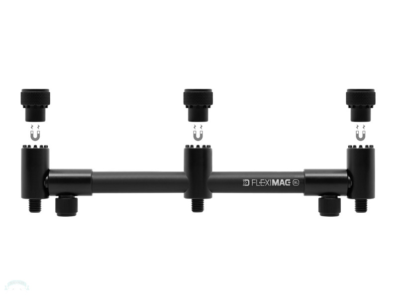 Mágneses gyorskioldó adapterrel és univerzális menettel ellátott buzz bar, amely kompatibilis a legtöbb piacon kapható leszúróval. A gyorskioldó adapter egy nagyon hasznos tulajdonság, segítségével a kapásjelzőket és a hátsó bottartókat becsavarozva lehet hagyni, és ha a szükség úgy kívánja, könnyen kihúzhatók a buzz bar-ból. Amikor pedig folytatni akarja a horgászatot bármikor vissza lehet tolni őket. A karok teleszkóposak, így a buzz bar szélessége igény szerint állítható, például az orsó méretének megfelelően. A horgászok körében kedvelt választás az elülső buzz bar méretének megnövelése, így a botspiccek enyhén eltávolodnak egymástól.A karok alul laposra vannak vágva, így a rögzítőcsavar meghúzásakor a helyükön maradnak és nem fordulnak el. A FlexiMAG BUZZ masszív alumíniumból készül, fekete, tartós, erős színbevonattal. Két méretben kapható: L-es (rövidebb) két bothoz és XL-es (hosszabb) három bothoz.Műszaki információk:Hossz:FlexiMAG BUZZ XL: 25-35cm