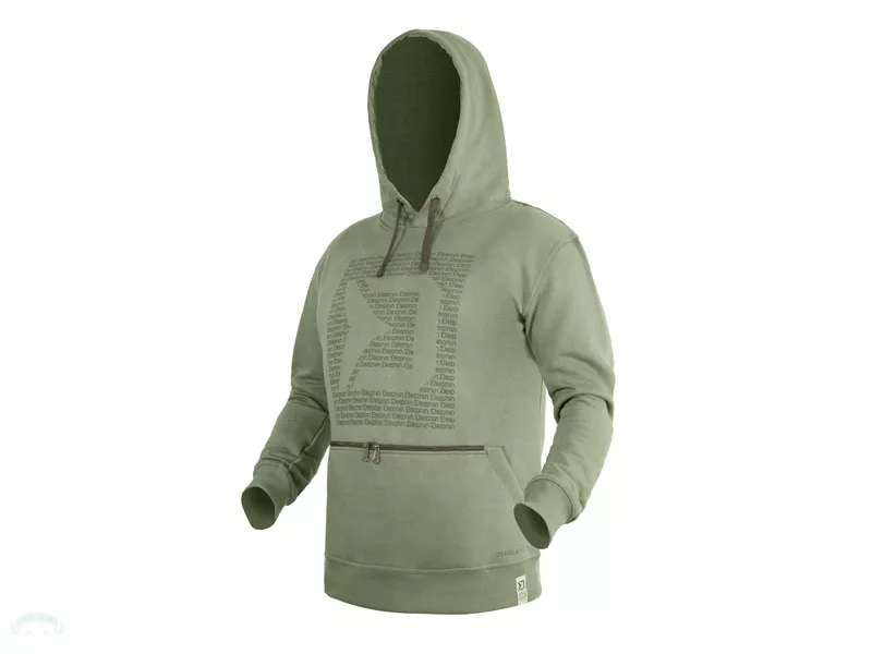 Maximális kényelmet és stílust kínáló kapucnis pulóver horgászathoz, természetjáráshoz vagy városi kirándulásokhoz. Zöld színű anyagból készül, amely rugalmas és kellemes tapintású, kiváló kényelmet biztosít.Nagyméretű kapucnival rendelkezik, széles húzózsinórral, amely szükség esetén állítható. Az ujjak végei keskenyek, és rugalmas mandzsettákkal vannak felszerelve, hogy szorosan illeszkedjenek a csukló köré. Ezenkívül a pulóver egy nagy, kétoldalas cipzárral ellátott TACKLE POCKET-tel rendelkezik, amely alkalmas horgászfelszerelések vagy olyan alapvető tárgyak tárolására, mint a telefon vagy a pénztárca. Alatta egy nagy kenguru zseb is található, amely tökéletes lehet kézmelegítésre a hideg időben. A derék része egy elasztikus pánttal is el van látva, hogy még jobban illeszkedjen a testhez.Az átgondolt LOGOS dizájn kisebb "Delphin" szövegeket tartalmaz, amelyek érdekes mozaikot formáznak meg a logónk alakjában, kiegészítve finom SGN és TACKLE POCKET logókkal.Technikai adatok:Anyagösszetétel: 60% poliészter, 40% pamut
