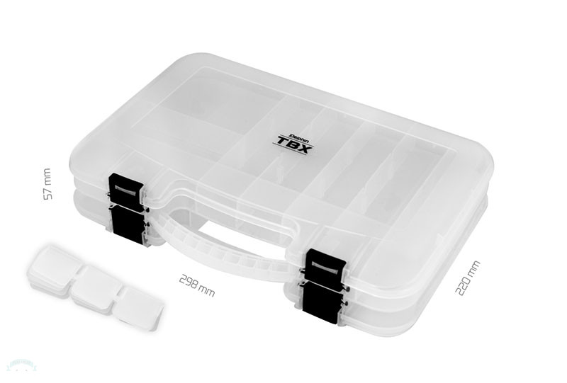 TBX Duo 298-12P Clip egy multifunkcionális műanyag doboz a horgászfelszerelése számára. Átlátszó műanyagból készül , így mindig tökéletesen áttekinthető lesz az Ön számára a dobozok tartalma. A DUO azt jelenti, hogy két önálló rakodórésszel rendelkezik egy alul és egy felül ötletes nyitással. Praktikus fekete műanyag csattal van ellátva. Rendelkezik még beépített merev fogantyúval is a könnyebb szállítás érdekében.Műszaki paraméterek:Méret: 298x220x57mmFix reteszek száma: 12Reteszek mérete: 1x(8,5x16,7x2,5cm), 4x(5x16,7x2,5cm), 5x(3,5x16,7x2,5cm), 2x(9,5x10,8x2,5cm)Kivehető válaszfalak: 8