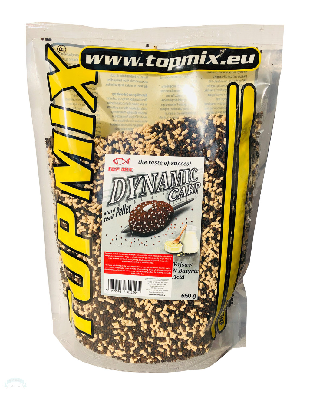 A Method feeder technikához sok éves tapasztalataink alapján összeállított pellet család, ami négyféle AQUA és színes édes pelletek komplex keverékéből áll. Halas, tehát fehérjedús és attraktívan színes, szénhidrátos összetevőinek köszönhetően gyors táplálkozási reakciót vált ki a halakból és sokáig az etetésen tartja őket. A DYNAMIC CARP pellet vonzó és kiegyensúlyozott ponty táplálék, a benne lévő színes micro pellet fokozza a keverék hatását, így nem csak az íz, hanem a látvány is felkelti a halak kíváncsiságát. A pellet nedvesítés után etetőkosárba nyomva, vagy két végén nyitott feeder kosárba töltve is kiváló és sokoldalú felhasználást biztosít. Felhasználási javaslat: Tegyen a pelletből egy edénybe annyit, amennyit fel kíván használni és nedvesítse meg (aromázhatja is). Ezután várjon néhány percet, és a pellet tökéletes állagú lesz az etetőkosárba való töltéshez. Évszaktól függetlenül jól használható intenzíven telepített tavakon és természetes jellegű vizeken is, ahol a célhal elsősorban a ponty és a kárász.