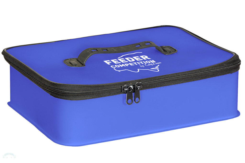 EVA anyagból készült 38x28x11 centiméteres szerelékes doboz. Fedele minőségi cipzárral zárható. Belseje a 4-4 darab 7 illetve 16 centiméteres, kivehető válaszfalnak köszönhetően változatosan alakítható. Az igényes, szivacsozott belső részben a válaszfalak 1,5 centiméteres osztásokban variálhatóak, így az aprócikken át a nagyobb kiegészítőkig mindent elnyel. Elsősorban feeder horgászoknak ajánljuk, de a Feeder Competition EVA Sortiment szerelékes dobozban minden olyan horgász örömét leli, aki szereti rendben tartani a kiegészítőit.