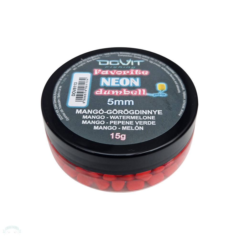Válaszd a sikeres csalit! A Favorite Neon Dumball évek óta az eladási statisztikánk éllovasa. Számtalan sikeres beszámolót, visszajelzést kaptunk fogósságáról. Használd ki a NEON színek fogósságát! A neon színű waftersek hosszú évek óta a legnépszerűbbek a horgászok körében. A rikító színek egyértelműen kapásra ingerlik a célhalakat. A Favorite Neon Dumball család az összes közkedvelt színt tartalmazza. Legyél eredményesebb versenyző! Neon színű waftersek nélkül ma már elképzelhetetlen a versenyszerű method feederezés. Versenyhorgászaink számos hazai és nemzetközi versenyen használják ezt a remek csalit, kiemelkedő eredménnyel. 2024-ben a Klubcsapat Method Feeder Országos Bajnokságon, többek között a Favorite Neon Dumball segítette csapatunkat Bajnoki címhez. Válts színt eredményesen! A különböző színek eltérő napszakokban is eredményesek lehetnek. Míg a reggeli órákban pl. a narancssárga fogós, addig délutánra már a pink lehet célravezető. Kapástalanság esetén érdemes a színekkel is kísérletezni, ami könnyen beindíthatja újra a halfogást. Rögzítsd a csalit egyszerűen! Az Favorite Neon Dumball anyagszerkezetének köszönhetően, rendkívül gyorsan és nagy biztonsággal alkalmazható csalitüskés rögzítéssel. Több szem együttes felkínálása esetén a fűzött verzió ajánlott. Minőségi garancia: Magas minőségi követelményeknek megfelelően, lényegében élelmiszeripari sztenderdek szerint gyártott termék. Megbízható forrásból származó, ellenőrzött alapanyagok. A Favorite Neon Dumball, csali kínálatunk zászlóshajója. Évek óta eladási statisztikánk éllovasa, és számtalan sikeres beszámolót kaptunk fogósságáról. Ez a wafters a method horgászatban ez egy kiindulási alap, és minden víztípuson eredményesen használhatod. Tökéletesen beállított felhajtóereje, rikító színei, valamint kiáramló aromái, verseny körülmények közt is eredményesen vonzzák a célhalakat. Kiszerelés 15g/doboz