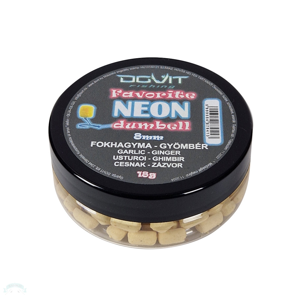 Válaszd a sikeres csalit! A Favorite Neon Dumball évek óta az eladási statisztikánk éllovasa. Számtalan sikeres beszámolót, visszajelzést kaptunk fogósságáról. Használd ki a NEON színek fogósságát! A neon színű waftersek hosszú évek óta a legnépszerűbbek a horgászok körében. A rikító színek egyértelműen kapásra ingerlik a célhalakat. A Favorite Neon Dumball család az összes közkedvelt színt tartalmazza. Legyél eredményesebb versenyző! Neon színű waftersek nélkül ma már elképzelhetetlen a versenyszerű method feederezés. Versenyhorgászaink számos hazai és nemzetközi versenyen használják ezt a remek csalit, kiemelkedő eredménnyel. 2024-ben a Klubcsapat Method Feeder Országos Bajnokságon, többek között a Favorite Neon Dumball segítette csapatunkat Bajnoki címhez. Válts színt eredményesen! A különböző színek eltérő napszakokban is eredményesek lehetnek. Míg a reggeli órákban pl. a narancssárga fogós, addig délutánra már a pink lehet célravezető. Kapástalanság esetén érdemes a színekkel is kísérletezni, ami könnyen beindíthatja újra a halfogást. Rögzítsd a csalit egyszerűen! Az Favorite Neon Dumball anyagszerkezetének köszönhetően, rendkívül gyorsan és nagy biztonsággal alkalmazható csalitüskés rögzítéssel. Több szem együttes felkínálása esetén a fűzött verzió ajánlott. Minőségi garancia: Magas minőségi követelményeknek megfelelően, lényegében élelmiszeripari sztenderdek szerint gyártott termék. Megbízható forrásból származó, ellenőrzött alapanyagok. A Favorite Neon Dumball, csali kínálatunk zászlóshajója. Évek óta eladási statisztikánk éllovasa, és számtalan sikeres beszámolót kaptunk fogósságáról. Ez a wafters a method horgászatban ez egy kiindulási alap, és minden víztípuson eredményesen használhatod. Tökéletesen beállított felhajtóereje, rikító színei, valamint kiáramló aromái, verseny körülmények közt is eredményesen vonzzák a célhalakat. Kiszerelés 18g/doboz