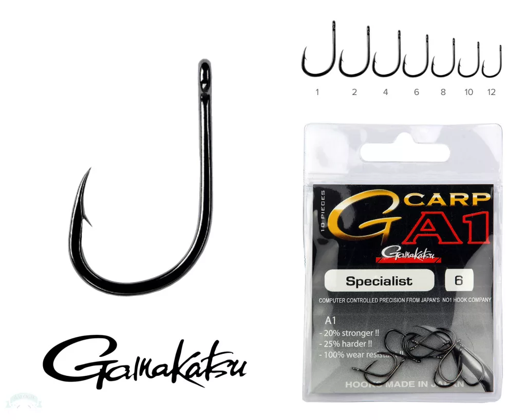 Fekete színű, különösen erős, masszív, kemény, füles horog.