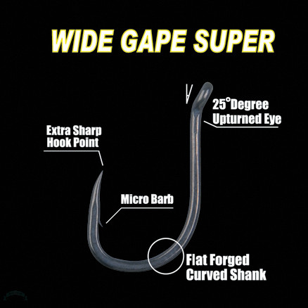 Ez a horog 25 fokban kifelé forduló szemmel, mikro szakállal és PTFE bevonattal rendelkezik.