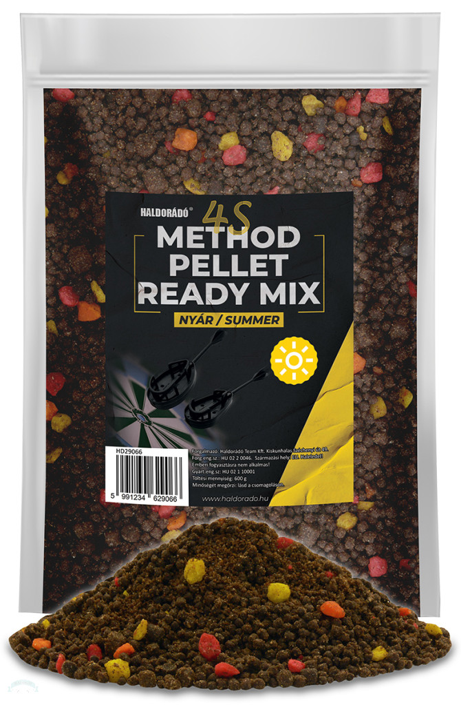 Az új Haldorádó 4S Method Pellet Ready Mix egy előre megnedvesített és optimálisra beállított tapadóképességű KÉSZ változat. A csomagolásból kiöntve a pelletkeverékek nem igényelnek több vizet, használatra kész állapotúak! Minden változat natúr, aromamentes. Ezeket természetesen a halak ízléséhez igazodva lehet ízesíteni, aromásítani. Elérhető változatok: Tavasz, Nyár, Ősz és Tél.