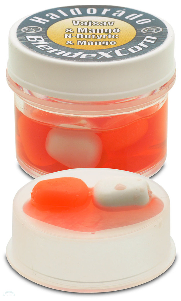 A Haldorádó BlendeXCorn Vajsav & Mangó rendkívül intenzív, vajsavnak köszönhető, orrfacsaró aromáját a mangó egy kicsit lágyítja, amely együtt egy különleges aromakombinációt ad. A BlendeX Pop Up csali család ezzel az ütős, főként nyári ízzel bővül 2019-től, így nem volt kérdés, hogy a BlendeXCorn csalik között is ott a helye! A kukoricaszemek narancssárga és fehér színűek. Különösen ajánlott a felmelegedett vizekben való horgászatokhoz, pontyra és amurra egyaránt. A gumikukoricákat egyébként sem kedvelik a törpeharcsák, így bátran használhatók azokon a vízterületeken is, amelyek fertőzöttek velük, de úgy tűnt a tesztelések során, hogy ezt a BlendeXCorn csalit végképp elkerülték, miközben az értékes halak (pontyok, amurok, kárászok) szépen kiválogathatók vele! Jusson majd ez eszetekbe a nyári hónapokban