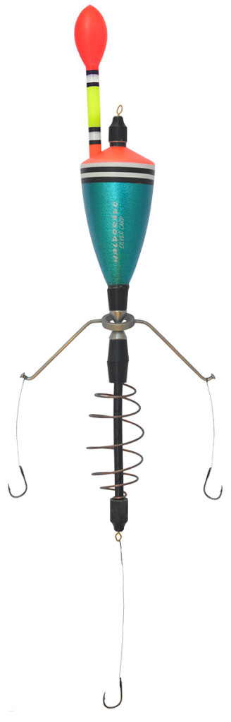 - Az úszó használatbavétele nagyon egyszerű, mindössze a tetején lévő forgóba kell belekötni a főzsinórt, felcsalizni a horgokat, megtölteni a spirálkosarat, és már dobható is!