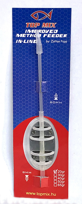 Fokozott repülési tulajdonságú, belső vezetéses method feeder kosár. A vezetőszár segítségével kiküszöbölhető a korábbi method feeder kosarak dobás közbeni "beszitálása" és ezáltal megnövekszik a dobás pontossága és hossza is. A hosszabb vezetőszár dobás közben jól megvezeti zsinórunkat, ezáltal megnöveli a dobás pontosságát és akár 15%-al a dobás hosszát is. Különösen előnyös, ha szűk helyre kell nagy pontossággal behorgászni, vagy a nagyobb távolságot kisebb súlyú kosárral akarjuk elérni. Három méretben, 20-30-40-50-65 g kerül forgalomba.
