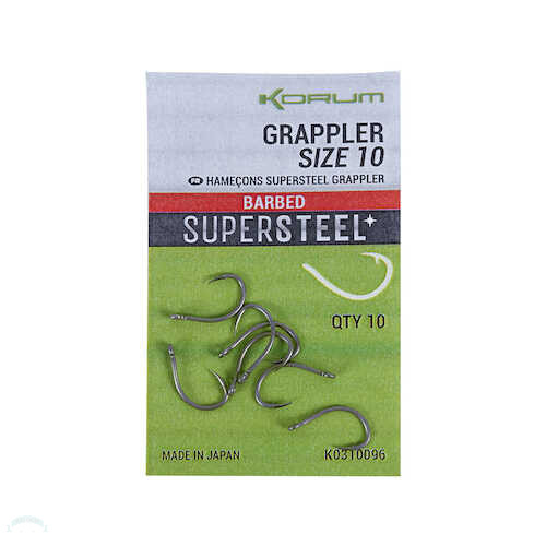 Supersteel Grappler horogcsalád Ezt az agresszív, ívelt szárú horgot úgy tervezték, hogy tökéletes akadást biztosítson a finomabban táplálkozó halak esetén is. Hegye visszafelé ívelt, míg a horogszem enyhén kifelé döntött, hogy tökéletesen használható legyen monofil előkék kötésénél is. Teflon bevonata és kémiailag élezett hegye ellenállóvá teszi a keményebb terepen is. Megvásárolható szakállas és szakáll nélküli kivitelben egyaránt.