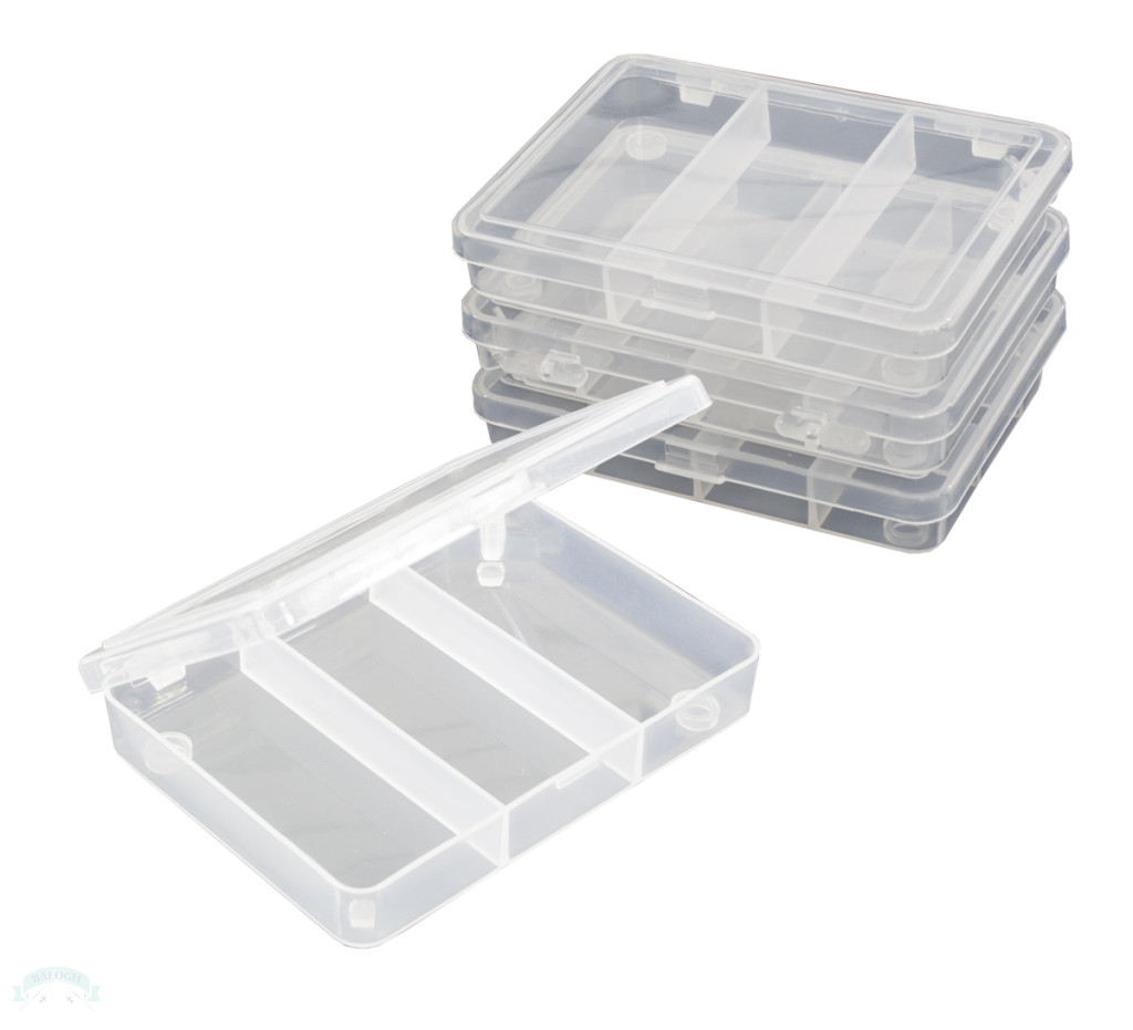Műcsalik és aprócikkek tárolására kiválóan alkalmas ez a doboz. Három, egymás mellé illeszthető dobozról van szó, melyeket, ha akarjuk, külön is tudjuk tárolni, vagy levinni magunkkal a vízpartra. A három doboz különböző elosztással rendelkezik, így kisebb és nagyobb gumihalakat, villantókat, vagy wobblereket egyaránt tárolhatunk benne.