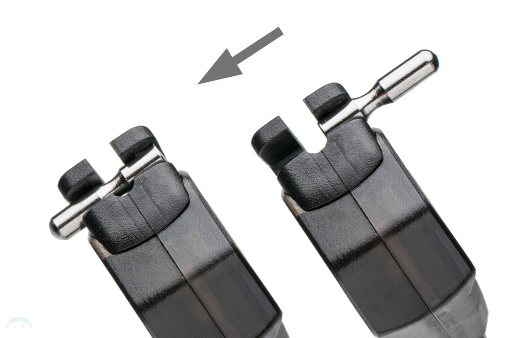 A megbízható csipesz biztonságosan tartja a damilt vagy fonott zsinórt, függetlenül azok átmérőjétől és a fej súlyától, ugyanakkor biztosítja, hogy kapáskor a függő akadálymentesen elengedje a zsinórt.