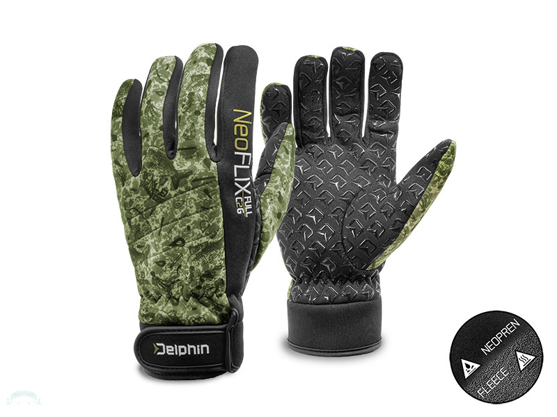 A Delphin NeoFLIX neoprén kesztyű a tökéletes kiegészítő a keze melegen és szárazon tartásához. A standard neoprén kesztyűkkel ellentétben, ennek a kesztyűnek a belseje gyapjú béléses, ami új szintre emeli a téli horgászat kényelmét. Nagy előnye még a tenyérrész csúszásgátló felülete, amely Delphin márkalogókkal díszített gumírozott réteggel van ellátva.Hogy ne juthasson be sem a hideg sem pedig a nem kívánt víz a kesztyűbe a csukló környékén, a szigetelésről az anyagba varrt gumi gondoskodik, és a tépőzáras szorítószalaggal kiegészítve könnyedén állítható. Ezt minden bizonnyal értékelni fogja, különösen akkor amikor hosszasan kell várakoznia egy kapásra egy fagyos napon.A kesztyű kialakítása a C2G terepszínen alapul egy kis fekete színnel kiegészítve, így a NeoFLIX tökéletesen illeszkedik a téli pontyhorgászat szerelmeseinek felszerelésébe.
