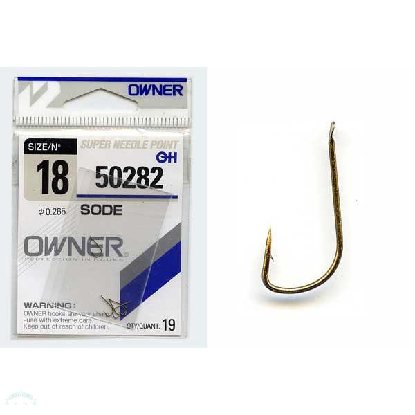 OWNER 50282 Sode egy kifejezetten keszeg horgászatra alkalmas horogtípus. Könnyű súlya miatt versenyhorgászok közkedvelt horga, bármilyen élő csali felkínálására alkalmas. Széles öblű, enyhén tört kialakítású, mikroszakállas horog. Erőssége és nagyobb méretei miatt folyóvízi horgászatra is alkalmas. Méretei: 4, 6, 8, 10, 11, 12, 14, 15, 16, 18, 20