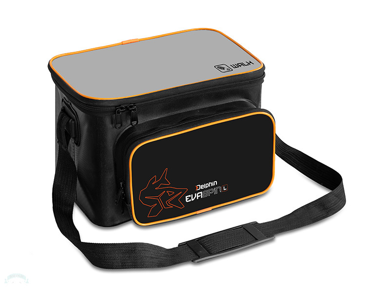 Praktikus pergetőtáska minőségi EVA anyagból, amely elegendő helyet kínál a ragadozóhalas horgászathoz szükséges csalik és kiegészítők tárolására.A vízálló EVA anyag és a Delphin EvaSPIN WALK kiváló minőségű varrásai megbízható védelmet nyújtanak még kedvezőtlen időjárási körülmények között is. Anyaga könnyen tisztítható, és nem szívja magába a szagokat, ami különösen hasznos, ha különféle folyadékokat (pl. aromákat) szállítunk a táskában.Az elülső részen található cipzáras zseb további tárolóhelyet biztosít kisebb kiegészítők számára, így még praktikusabbá téve a táskát.Az EvaSPIN pergetőtáskák modern megjelenésükkel tűnnek ki, melyben a fekete és szürke szín narancssárga elemekkel – például egy csuka logóval – egészül ki. A táska állítható vállpánttal rendelkezik a kényelmes szállítás érdekében.A táska belső rekeszébe különféle műanyag dobozok helyezhetők, például a Delphin TBX One 225-15P. Az elülső zsebbe pedig ideálisan illeszkedik például a Delphin TBX One 210-6P doboz, valamint mások is.Technikai adatok:Méret: 31x21x19cmElső zseb mérete: 24x5x17cmŰrtartalom: 12L