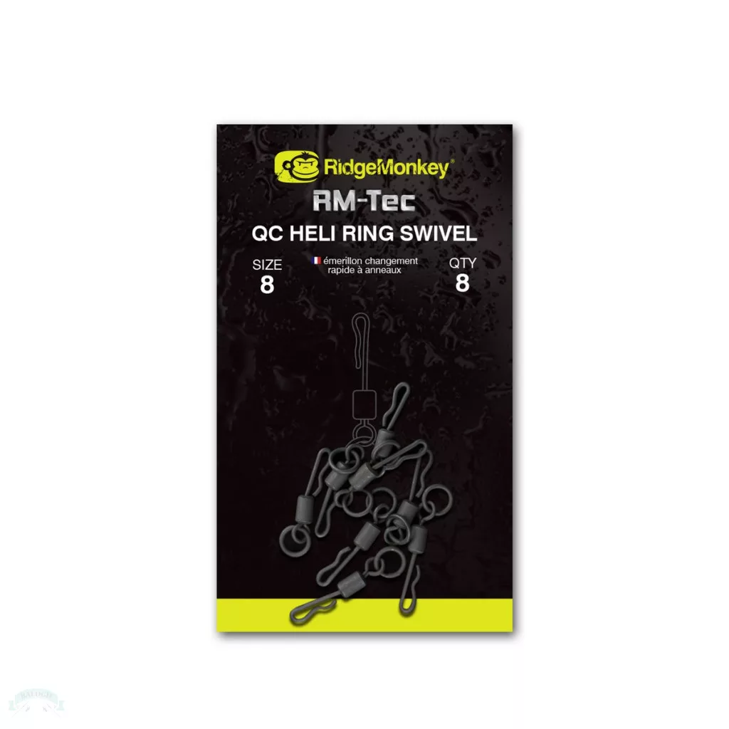 RIDGEMONKEY RM-TEC QUICK CHANGE HELI RING SWIVEL SIZE8 GYORSKAPCSOS FORGÓ 8DB