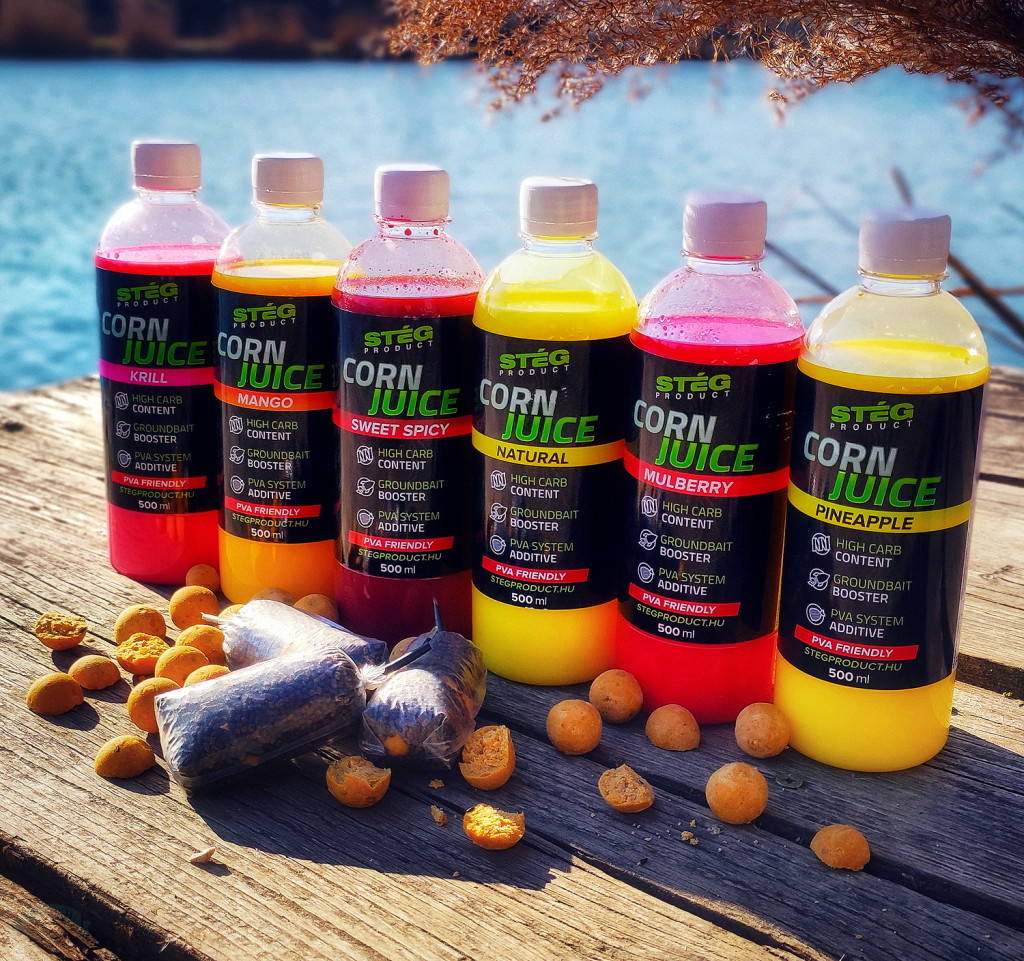 A Corn JUICE-zal benedvesített etetőanyagot nagyon hosszú ideig lehet tárolni hűtés nélkül is, az eredeti minőség megőrzése mellett. PVA-s horgászatra is eredményesen használható. A PVA mixeket, pelleteket a felhasználás előtt be kell locsolni CORN JUICE-zal és megvárni míg a szemcsék felszívják magukba az anyagot.