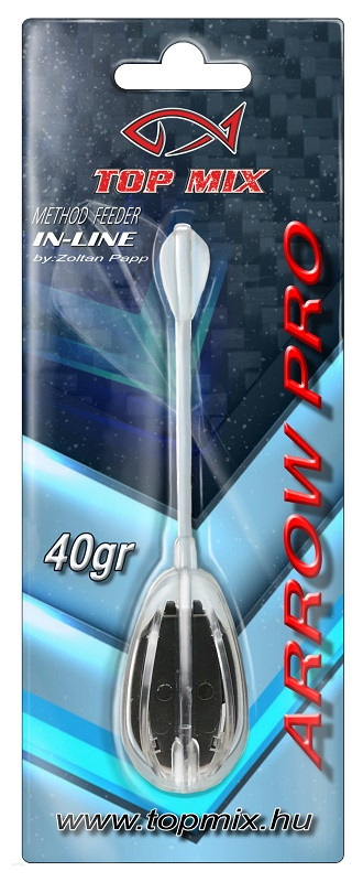 A TOP MIX legújabb, egyedileg tervezett method feeder kosara, a hosszanti bordás method feeder kosár család, melynek kifejlesztéséhez a legmodernebb 3D nyomtatási technológia lett alkalmazva. Az ARROW PRO method kosáron hosszanti irányban elhelyezkedő bordák kiválóan megtartják az etetőanyagot, megfelelő helyet biztosítanak a csalinak és csökkentik a horog elakadás lehetőségét. Az előretolt súlypont, a súly kialakítása, formája, az eddigi kosarakhoz képest a legáramvonalasabb kialakítás. A hosszabb szár és a száron lévő vezető szárny kiváló repülést, távoli és pontos dobásokat biztosít a method kosárnak. A kialakítása miatt a vízbe éréskori csobbanás hangja is csökkent. A kosár alján kialakított kapaszkodó bütykök pedig a fenéken a csúszásmentességet biztosítják a kosárnak. A horgászok igényeinek megfelelően, a method kosarak a szerelék megbontása nélkül a zsinórról egy pillanat alatt levehetők, cserélhetők. Nagy szabadságot biztosítva, szállításhoz, vagy a különböző súlyú method kosarak variálásához. Az etetőanyagot tartó kosár felső részének gyártásához, 50 %-ban újrahasznosított, fluoroclear alapanyagot használtunk.
