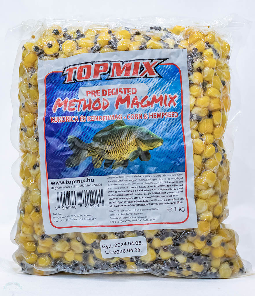 A Top Mix Pre-digested magvak előemészetési eljárással készülnek, amely eljárás nem mai keletű az állatok takarmányozásának területén és ez vonatkozik a halak táplálására is. Egyik ilyen eljárás a főzés utáni emésztő enzimekkel történő kezelés, ami technikailag viszonylag könnyen kivitelezhető, mégis hatalmas tapasztalatot és szakértelmet igényel. Csalogató hatása azonban megkérdőjelezhetetlen. Az elkészített, majd élelmiszeripari védőgázas csomagolásba zárt magvak tartósítószer nélkül is nagyon hosszú ideig megőrzik a frissességüket, ezáltal a csalogató hatásukat. Magvakkal horgászni, etetni, ezekkel halat helyhez szoktatni nem újkeletű dolog. Az idősebb horgásztársadalom ezen nőtt fel, de a mai kor modern horgászai is tudják, hogy időszakonként ennél hasznosabb, eredményesebb módszer nincs azóta sem. Az előemésztett magvak nem telítik el a halakat, gyors anyagcserét biztosítanak nekik, ezért állandóan visszatérnek az etetésre. Folyamatosan táplálkoznak, így ha az etetésünk rendszeres, akkor ott tudjuk tartani őket magunk előtt. Nagyon hasznos a régi mondás, hogy ' azzal horgássz, amivel etetsz". Ha ezt figyelembe vesszük mielőtt vízbe tennénk az etetést, akkor érdemes a szebb szemeket kiválogatni és azzal csalizni. Tigrismogyoró, kukorica, búza, illetve ezek további magvakkal kiegészített, pontyra és amurra összeállított speciális keverékei is megtalálhatók a kínálatunkban, ezért bármilyen hal horgászatához kiválaszthatjuk a megfelelő magvat, vagy magkeverékeket, illetve készíthetjük el saját keverékeinket.