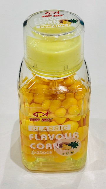 A TOP MIX MagicCorn kukorica imitáció (gumikukorica) olyan tulajdonságokkal rendelkezik, amelyek jó csali felkínálás esetén ellenállhatatlanná teszik azt a halak számára. Megtévesztő hasonlóság az igazi konzerv kukoricához, kitűnő lebegő képesség és intenzív íz jellemzi ezt a terméket. Az íze és aromája egyedül álló, ezen felül egy praktikus tégelyben van, amiből egy kis kanál segítségével szedhető ki a 3 x 25db kukoricaszem. Nem koszoljuk ezáltal sem az üvegben lévő szemeket, sem az aromát. A tégelyben 3 méretű kukorica szem található, közepes (M) méret jellemzően a dobozos kukorica mérete, a nagyobb méret (L) az apróbb halak szelektálására szolgálhat, a kicsi méret (S) pedig igazi versenyméret, amelyet akkor használunk, ha halat akarunk fogni, mérettől függetlenül. A legcélszerűbb és legtartósabb felkínálási mód a TOP MIX Csalitüske, illetve az S méretűnél a Fine Csalitüske. Ezt használva egy csalival akár több tucat halat is megfoghatunk, ha nem veszítjük el. Ha még nagyobb csalira van szükségünk, akár kettő szemet is feltűzhetünk a megfelelő méretű csalitüskére. A horgászat végén célszerű a csalit ismét visszatenni a tégelybe, hogy újra feltöltődjön, magába szívja az egyedi aromát. Így egy kis tégely, akár egy szezonra is elegendő lehet! Különösen alkalmas a pontyos method-feeder technikához, ahol a MagicCorn minden előnyét maradéktalanul ki tudjuk használni. Rugalmas, szívós csali, amely további előnye, hogy nem sérülékeny és nem tudják az apró halak sem szétszedni. Hat nyerő ízben (Édeskukorica, Méz, Eper, Ananász, Fokhagyma, Csoki-Narancs) kerül forgalomba.