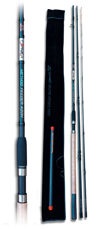 A botok anyaga magas minőségű 24T carbon. Az anyag kiváló tulajdonságainak köszönhetően a botok könnyűek, feszesek, jól terhelhetők és nagyon kezesek. A botok kialakításánál nagy figyelmet fordítottunk arra, hogy élmény legyen vele a horgászat, minimálisra csökkenjen a halvesztés lehetősége. A tökéletesre hangolt karakterisztika eredményeként a botokkal könnyedén és pontosan tudjuk a kívánt távolságot meghorgászni és nem kell félni a halvesztéstől akkor sem, ha kicsi horoggal és vékony előkével horgászunk. Kategóriájukban a legkönnyebbek közé tartoznak, így kényelmessé teszik a horgászatot. A botok kéttalpas, a mai elvárásnak megfelelő magas minőségű SeaGuide gyűrűkkel szereltek. A botok felülete mattfeketére lakkozott. A nyél hossza optimális a dobásokhoz, míg anyaga, EVA és parafa kombinációja, kellemes fogást biztosít. A nyél fölött, a bottestre horogbeakasztó fül is felszerelésre került. A spiccek hármas támaszú spiccgyűrűket kaptak, így nem hajolnak el és dobáskor is kisebb lesz a felcsavarodás, ezzel együtt pedig a spicctörés lehetősége. A T-Rex Method Feeder botcsalád 3,60, 390 és 420 méteres hosszban és hosszonként két erősségben kerül forgalomba, tökéletes megoldást kínálva a legtöbb helyzetre.