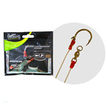 Egy alap harcsás előke. Felépítse: forgó-fonott előkezsinór-horog + kötésvédők. Ezt a készséget sokoldalúan fel lehet használni.