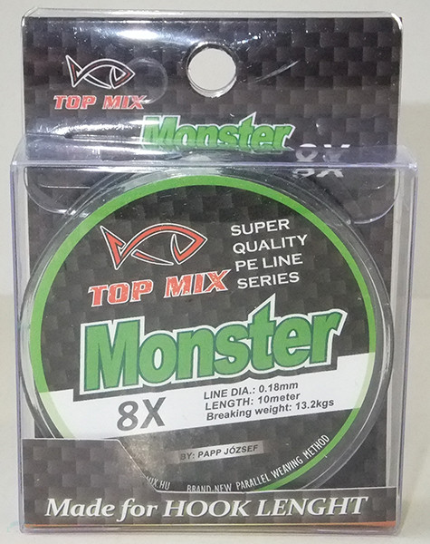 Magas minőségű, 8 szálból font, tökéletesen kőrszövött felsőkategóriás fonott előkezsinór család. Nagyteljesítményű, a 8 szálnak köszönhetően teljes hosszában tökéletesen kör keresztmetszetű a zsinór. Kód átmérő szakítószilárdság kiszerelés 740 0,08mm 5,5kg 10m 741 0,10mm 5,9kg 10m 742 0,12mm 8,2kg 10m 743 0,14mm 9,5kg 10m 744 0,16mm 10,5kg 10m 745 0,18mm 13,2kg 10m